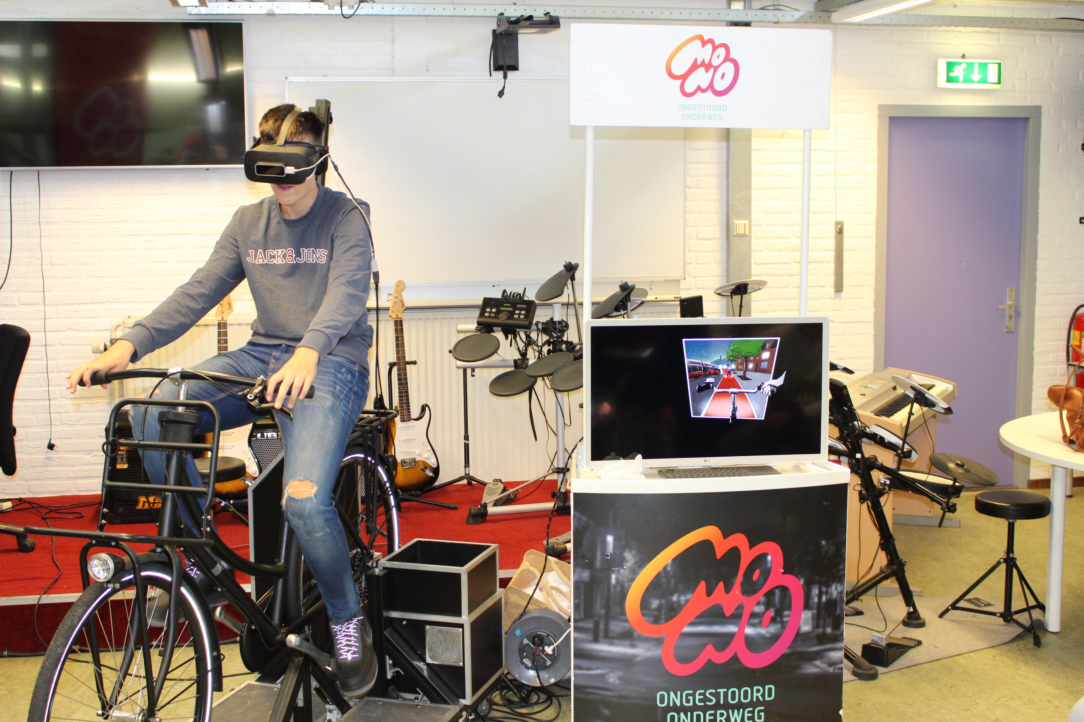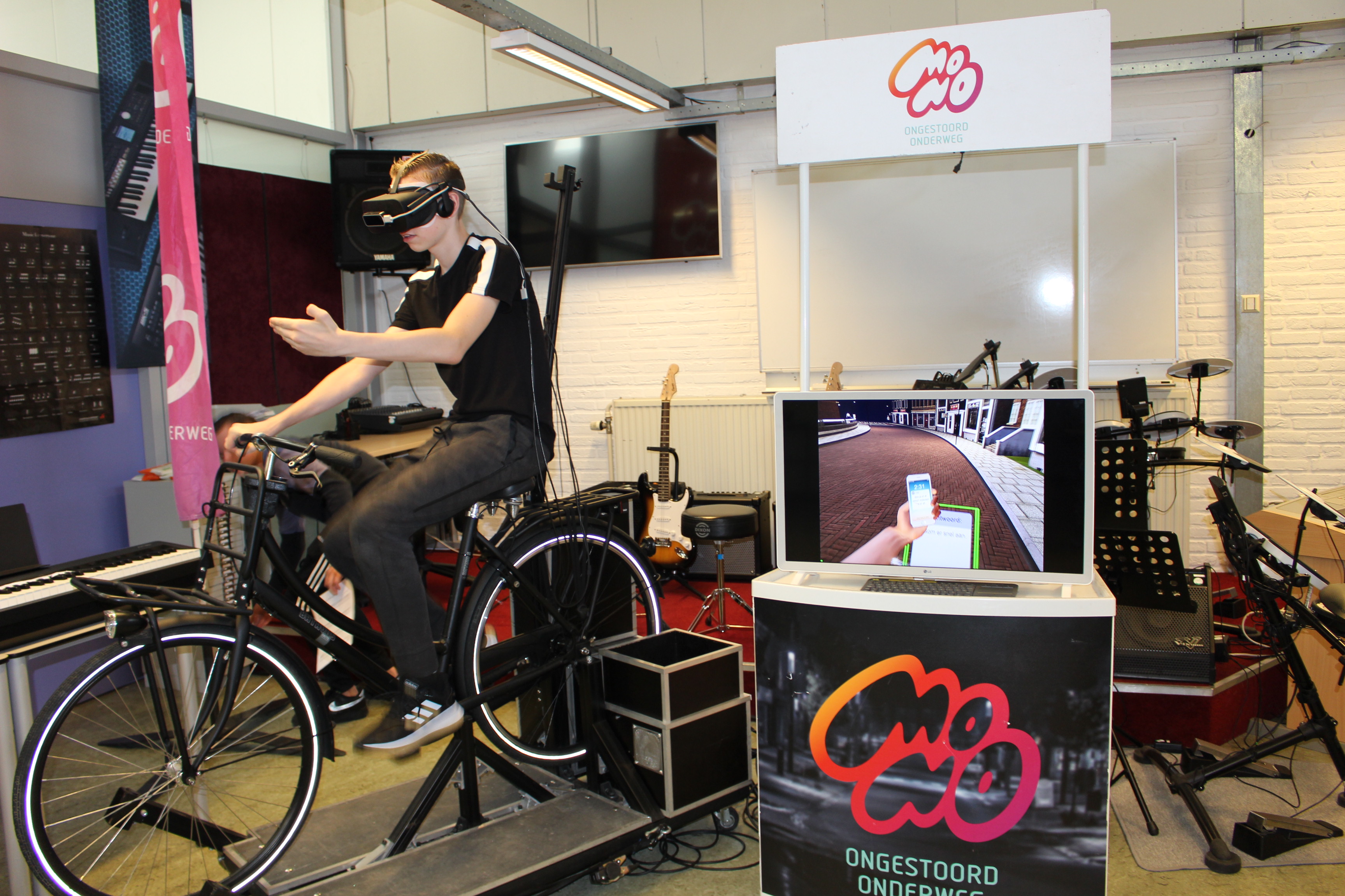 Leerlingen nemen met VR-bril plaats op de fietssimulator om te ervaren hoe gevaarlijk afleiding in het verkeer is. De Distraction game maakt duidelijk hoe lastig het is om te fietsen en bezig te zijn met je smartphone. Door middel van een interactieve quiz komt de theorie aan bod.